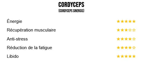 cancéreuses. - Cordyceps : Chen S. et al. ont mis en évidence une augmentation de l’endurance physique via une stimulation de la production d’ATP.